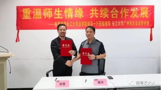 次日,李华成、尹家经带队来到法学10级刘芳校友所在的广东诺臣律师事务所(以下简称“诺臣所”),举办联合共建毕业生就业基地签约授牌仪式。本次活动由诺臣所一级合伙人刘芳校友主持。