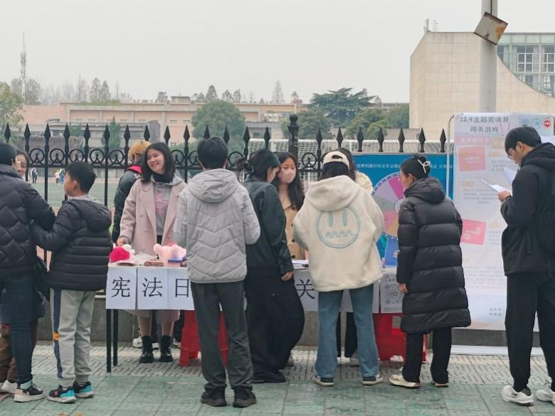 活动过程中,前来参与的同学熙熙攘攘。其中,法律知识纸条盲盒、法律案例大转盘、法律自由签以及法律版“谁是卧底”不仅让参与学生在生动有趣的游戏中学习宪法知识、尊重宪法权威,也让他们在思考中不断提升自身法律素养,养成遵法学法守法用法的良好风尚。