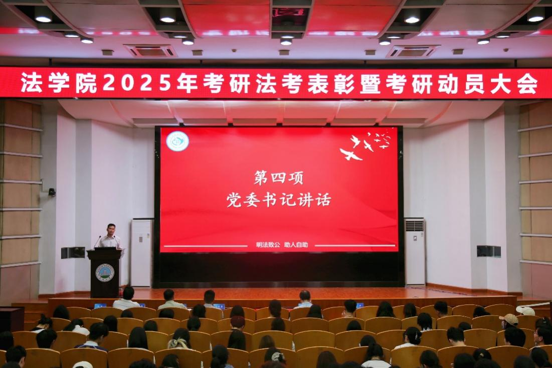 周胜美对学院2025年学生法考、考研、考公工作进行了总结,对在法考、考研、考公过程中涌现出的2021级一批优秀毕业生进行了表扬,勉励2022级学生把握时代机遇,将个人理想融入国家发展大局,培养学生自主学习与自我管理能力,制定并落实个性化学习计划,踊跃考法、考研、考公,坚定信心、明确目标、创先争优、勇毅前行,争取2026年取得更大的成绩。