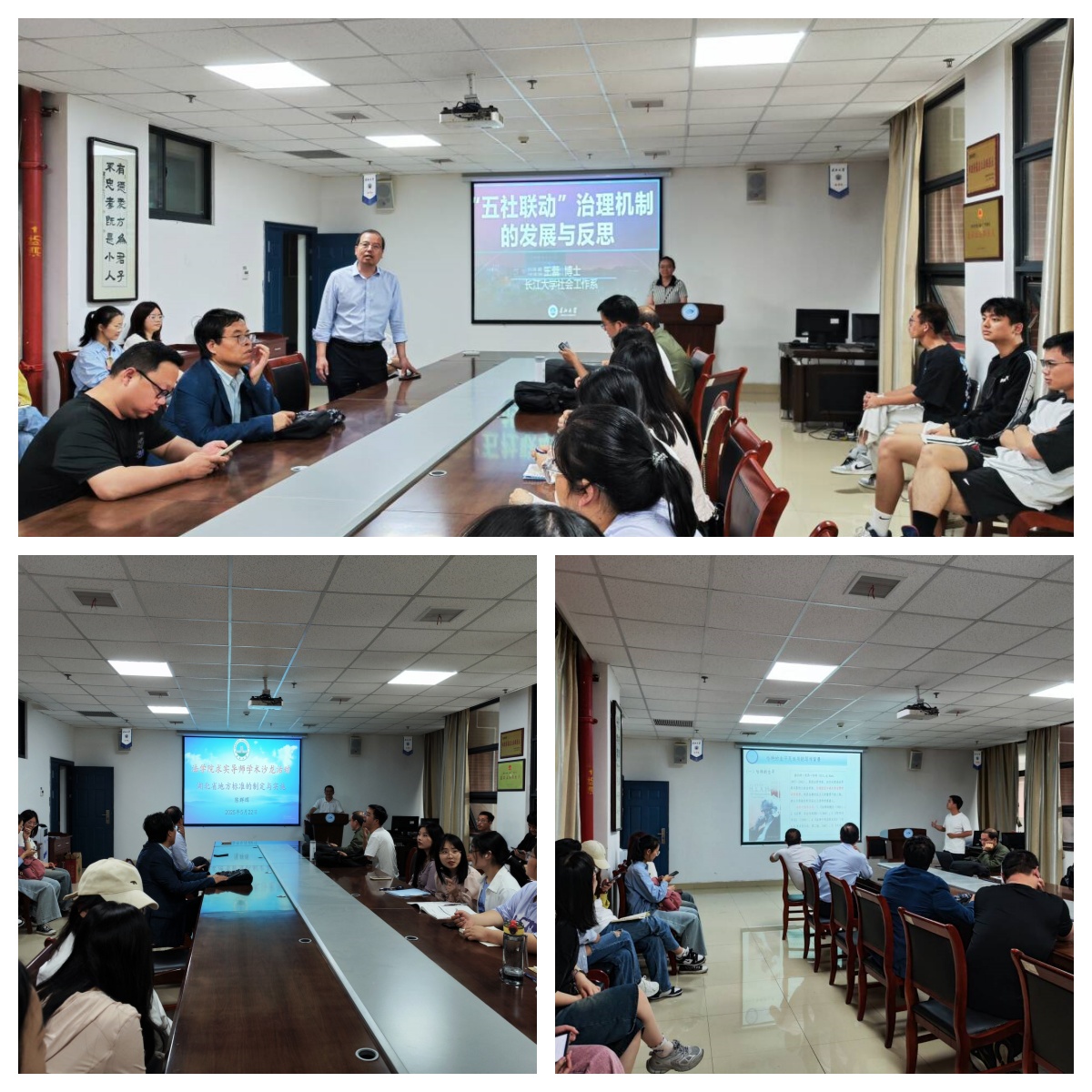 本次沙龙特邀Bsports必一体育五位导师围绕社会治理、法学理论及实践展开深度分享。王蕾导师以《“五社联动”治理机制的发展与反思》为题,系统梳理了“五社联动”在基层治理中的实践路径,并结合案例探讨其优化方向;杜厚扬导师聚焦社会热点问题,通过《未成年人有偿陪侍问题社会化治理》的讲座,从法律与社会治理双重视角剖析现象成因,提出综合治理建议;朱帅导师则以《复杂系统下的自组织》为题,引入跨学科视角,阐释自组织理论在法学与社会治理中的应用潜力;邱祥导师围绕经典法哲学命题,以《法律是什么?——以哈特〈法律的概念〉为线索展开》为题,带领师生回溯法理学核心争议,激发对法律本质的思辨;陈群辉导师结合地方实践,在《湖北省地方标准的制定与实施》中解析地方立法的科学性与可操作性,为标准化建设提供理论支撑。