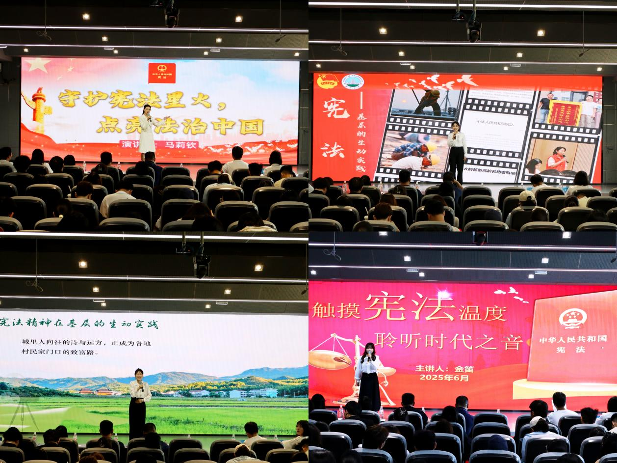 校园普法亮点纷呈。3・15国际消费者权益日活动以“文字+漫画” 解读法律条款、剖析学子维权案例;知识产权模拟法庭大赛、“学宪法・讲宪法” 演讲比赛,分别通过沉浸式推演、多元视角演讲,锤炼学子专业能力、传递法治信仰;法治接力赛以趣味互动让法律条文贴近生活,法律作品征集活动收获300余件反诈、维权主题作品并集中展览。国家宪法日前后,升旗仪式、主题讲座、“我和宪法合个影” 等活动,推动宪法精神扎根校园。