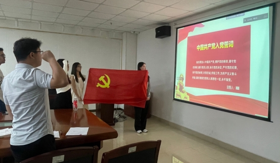 最后,全体党员面对党旗庄严宣誓,支部书记盛文军强调学生党员要以良好的精神状态和坚定的理想信念投入到学习和工作中,谨记自己的身份,严格要求自己,起到模范带头的作用。