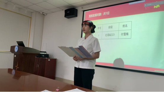 经其入党介绍人发表意见后,支委会向支部报告对发展对象的综合审查情况,与会党员对发展对象提问及就其能否入党进行充分讨论后,由正式党员进行无记名投票,并现场宣布投票结果,付雪梅同志获得全票赞成,支部大会通过了接收发展对象为预备党员的决议。