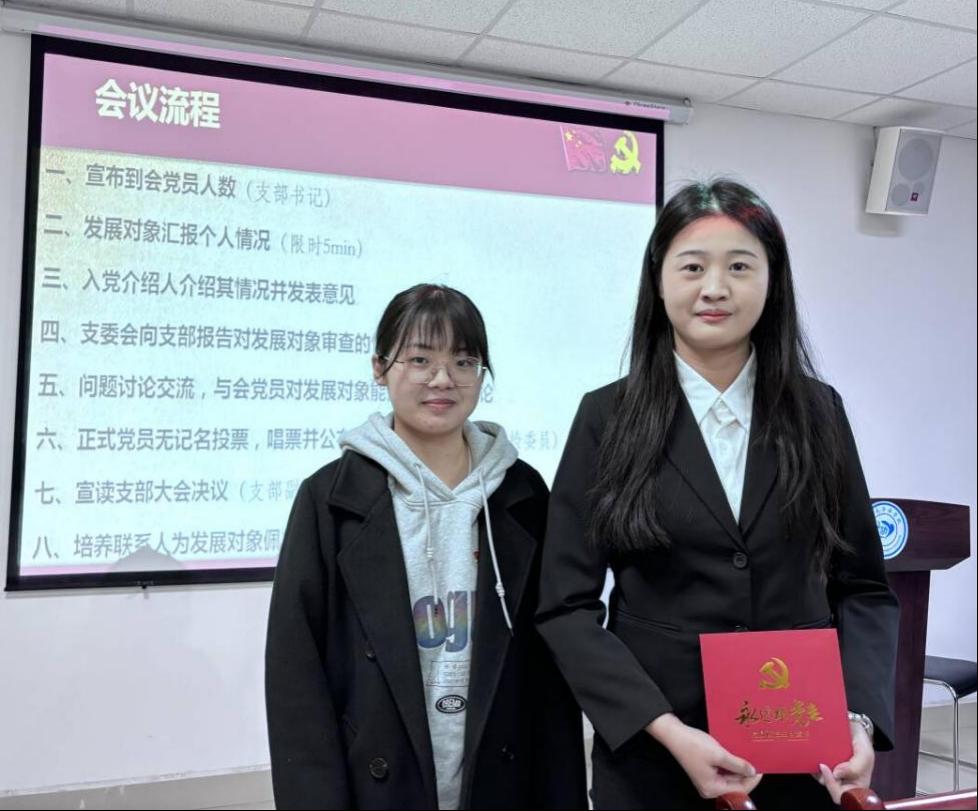 会议在庄严而热烈的氛围中拉开帷幕,支部书记盛文军同志首先宣布了本次会议的参会情况及会议议程。在预备党员接收环节,许笑同志以饱满的热情和真挚的情感,从思想追求、学业成绩、工作实践、日常生活等多个维度,向党组织全面而深刻地汇报了自己的成长历程和入党动机。她深情地表示,将铭记党组织的培养与关怀,以此为新的起点,继续砥砺前行,不断提升自我,以更加坚定的信念和步伐向党组织靠拢。经过入党介绍人的详尽介绍、支委会的严格审查以及正式党员的无记名投票,大会一致同意接收许笑同志为中共预备党员,现场响起了热烈的掌声。