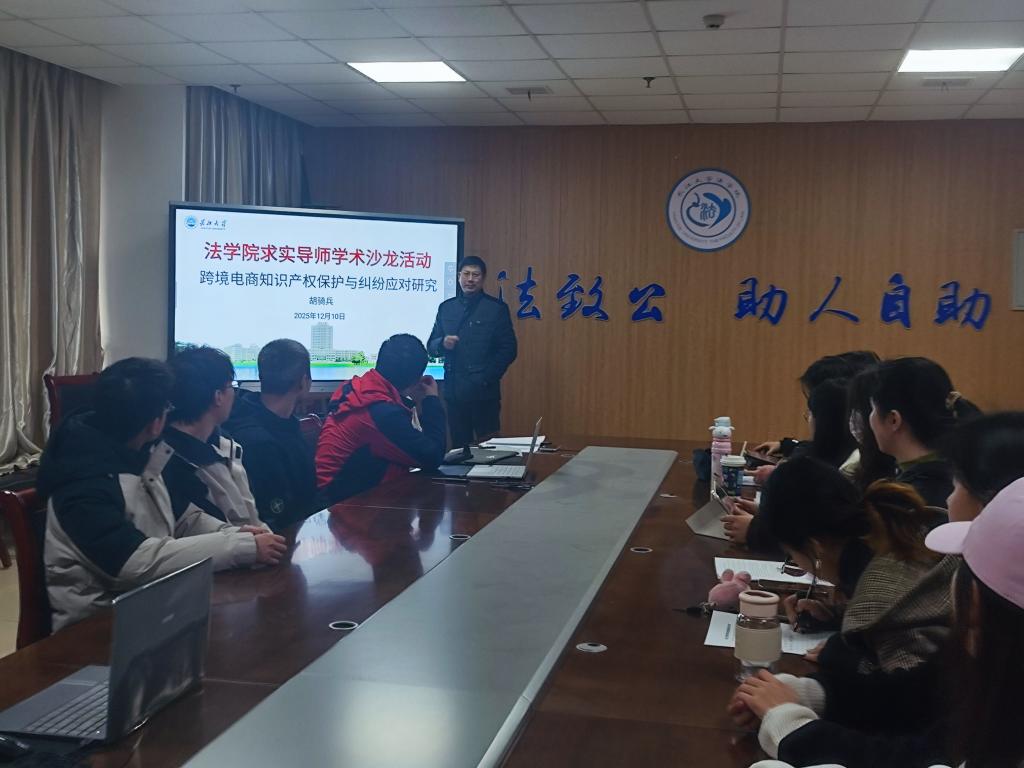 (通讯员:刘依强)2025年12月10日,Bsports必一体育求实导师讲座在文科楼203会议室成功举办。本次讲座特邀Bsports必一体育副教授胡骑兵担任主讲嘉宾,围绕“跨境电商知识产权保护与纠纷应对研究”这一前沿课题展开深度分享。讲座吸引了近30名学院教师及研究生积极参与,现场学术氛围浓厚,交流热烈。