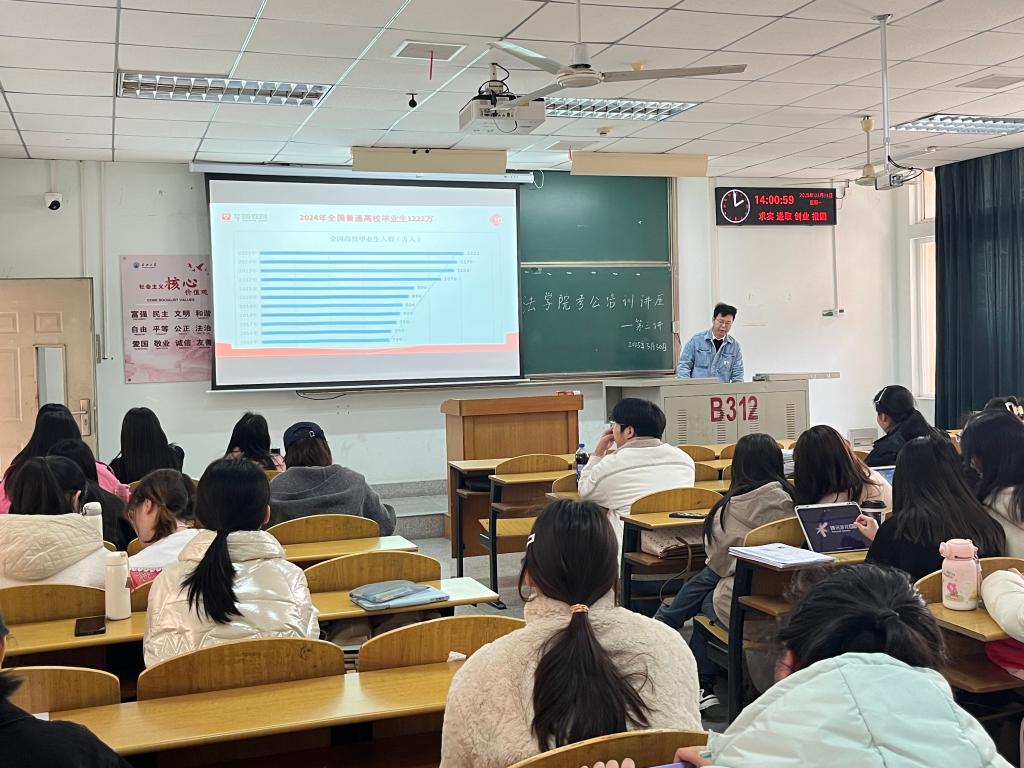 (通讯员 胡曦禾)2025年3月31日,Bsports必一体育公务员考试培训讲座第三讲在13教B312举行,讲座由专业公考培训机构华图教育章康老师主讲,Bsports必一体育部分22级本科生参加。
